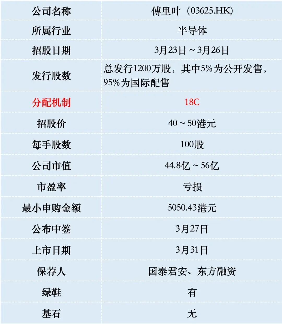 需要注意的是,以18C上市的公司,初始公开发售股份5%;超购10倍~49倍回拨至10%,超购50倍以上回拨至20%。